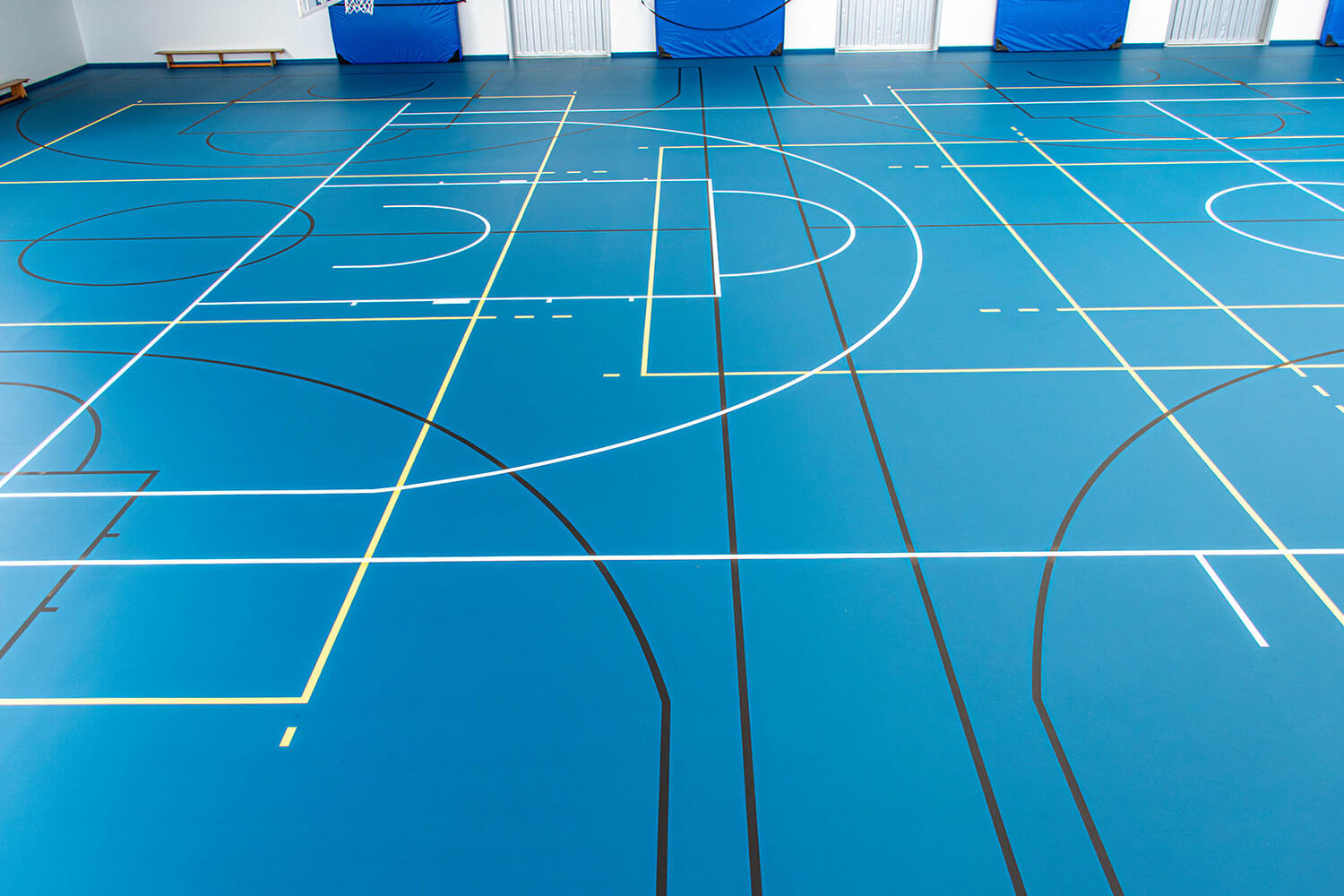 Um den Lernenden nicht nur eine hervorragende schulische Ausbildung, sondern auch optimale Bedingungen für den Sportunterricht zu bieten, wurden in der Sporthalle 1.260 m² REGUPOL Boden verlegt. Der REGUPOL dynamic classic 9+2 in der Farbe Capri Blue schafft ideale Voraussetzungen für zahlreiche Sportarten wie Basketball, Volleyball, Badminton und viele weitere Aktivitäten. Dieser traditionelle Sporthallenboden überzeugt durch gezielten Kraftabbau, hohe Langlebigkeit und dauerhaft gleichbleibende Eigenschaften.